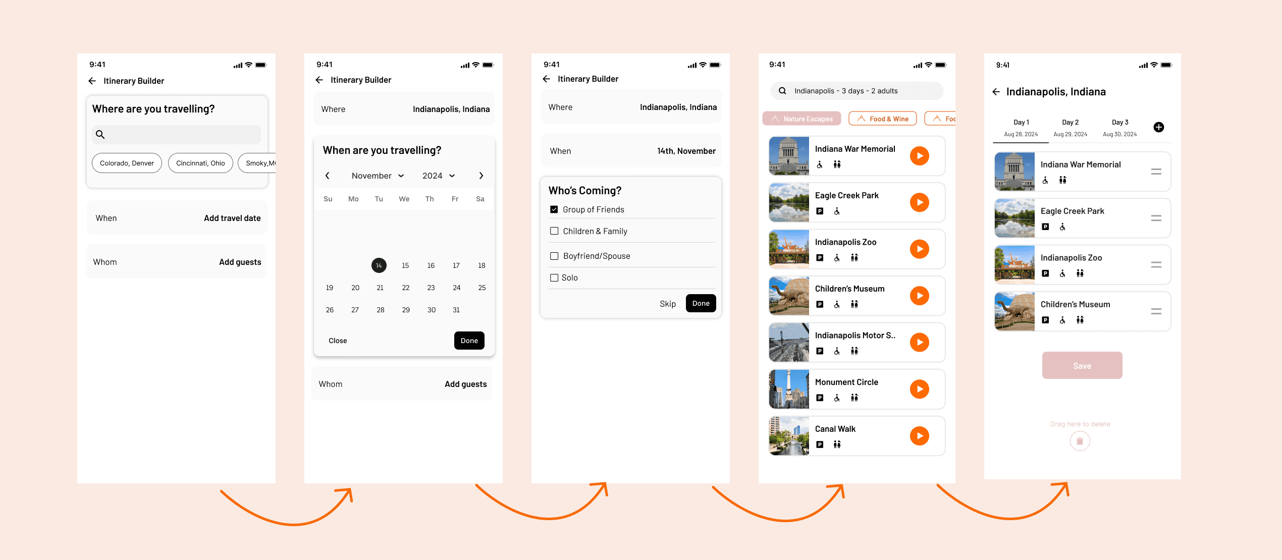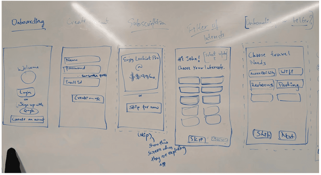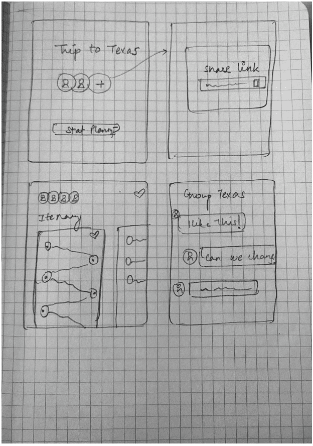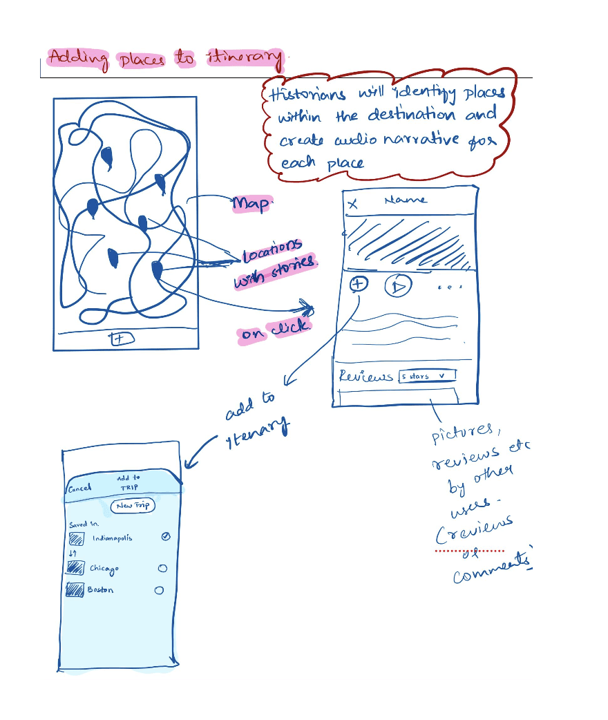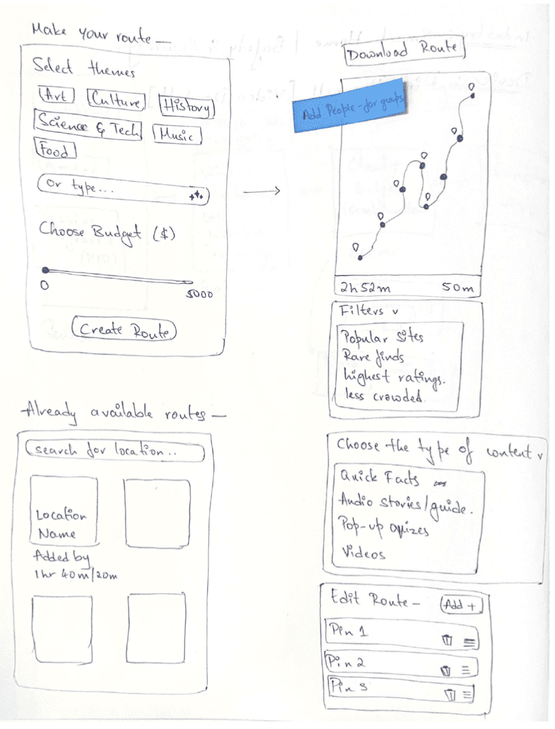 We created storyboards depicting both planned and unplanned trips, as well as experiences for solo travelers and group travelers.