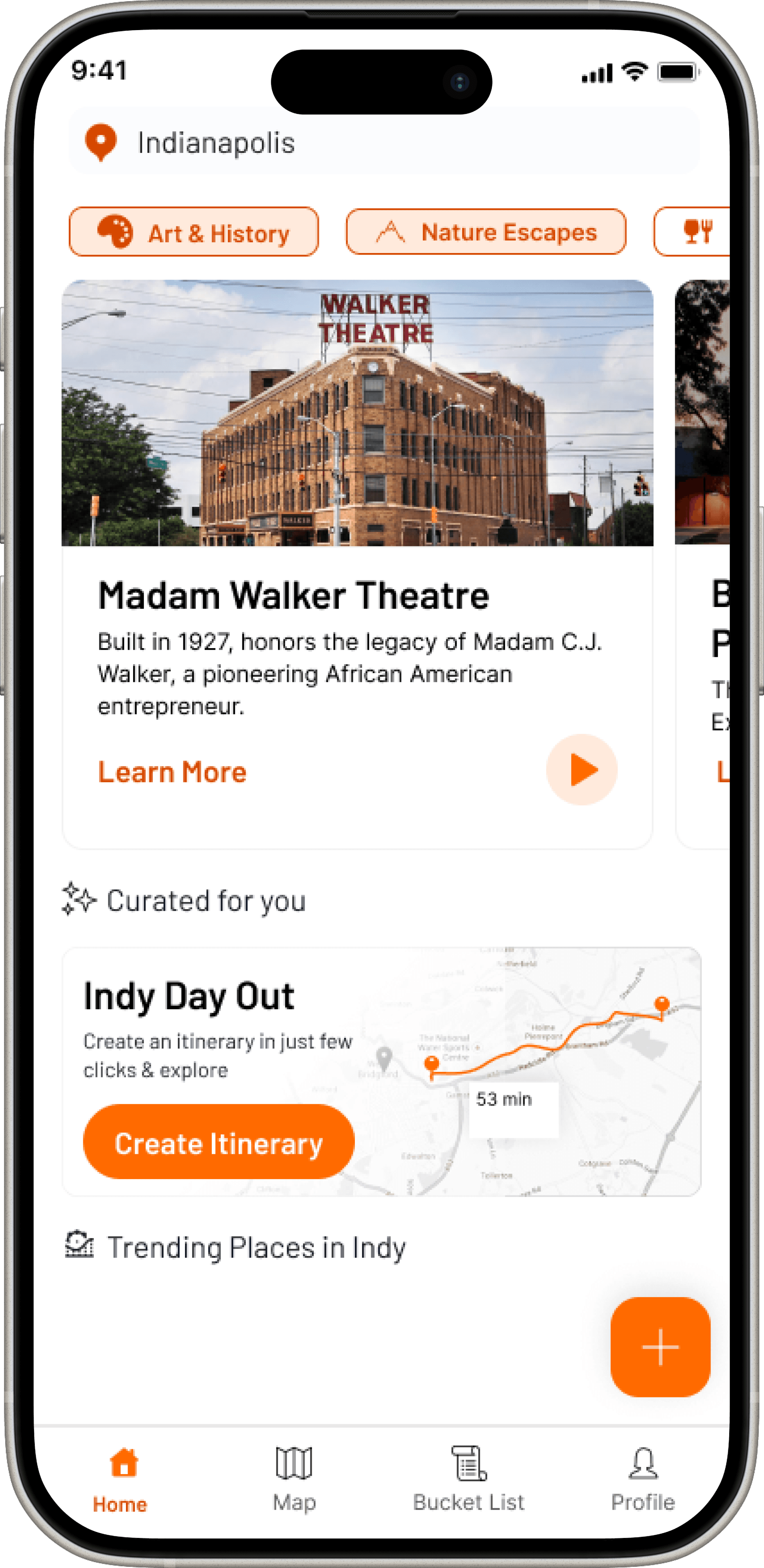 While browsing the app, users can add their favorite places by creating destinations in their "bucket list" for later reference when making an itinerary.