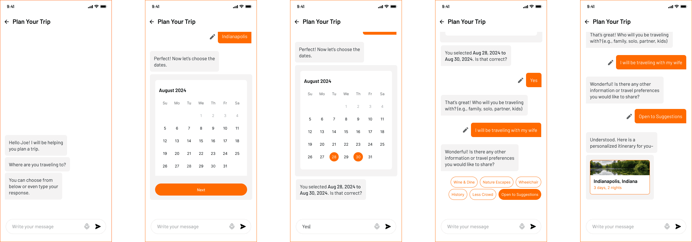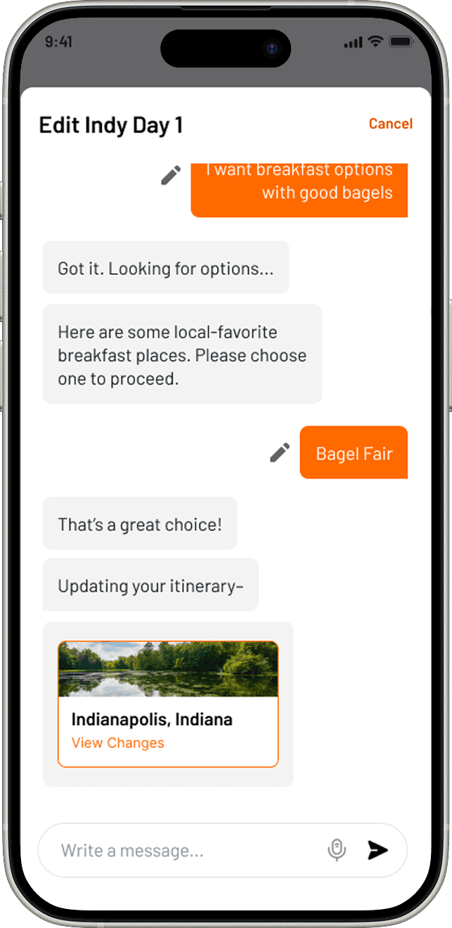To make the first launch feasible, I designed the itinerary creation as a Conversational UI Chatbot.