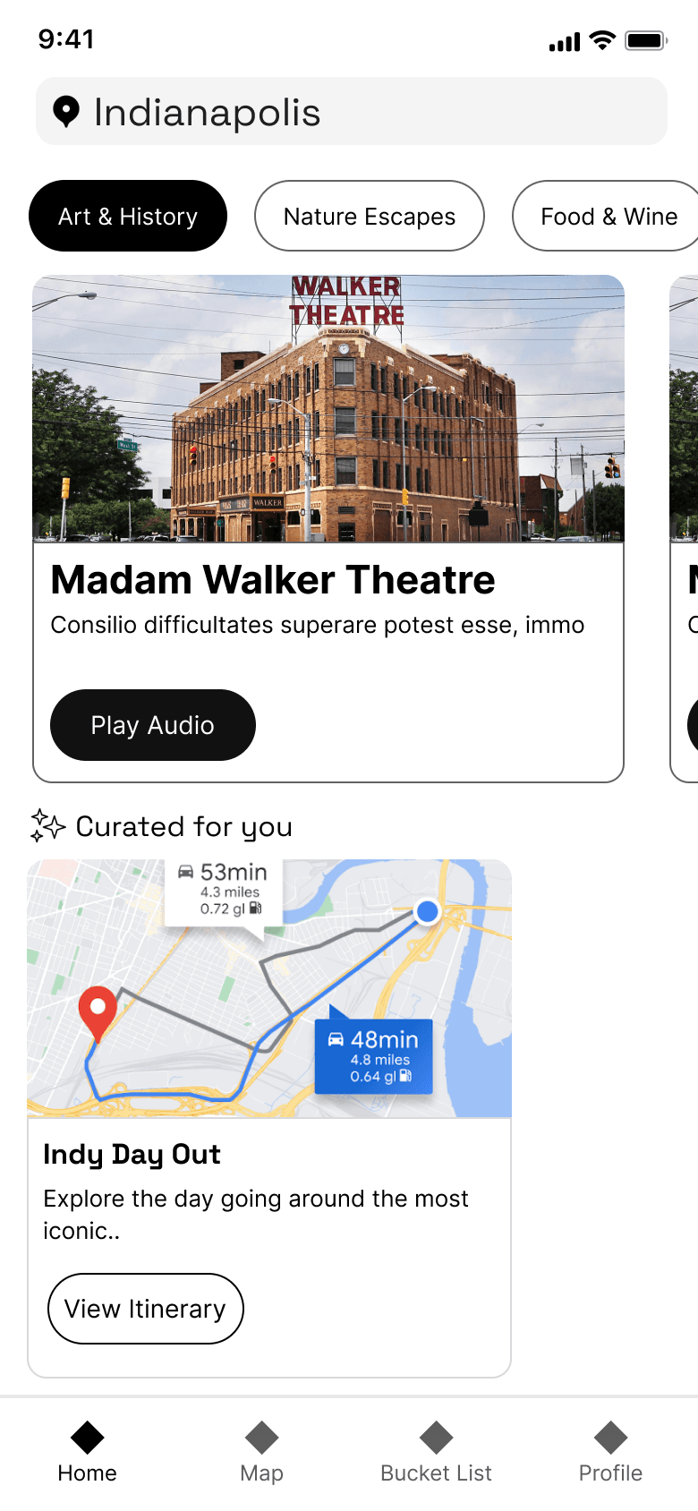 “A mobile application that takes the user’s preferences and curates personalized itinerary and routes, helping them explore the history and culture of a destination through a tailored list of destinations and activities. The platform also gives an enhanced experience through audio narratives and engaging stories about the place, making the journey both educational and immersive.”